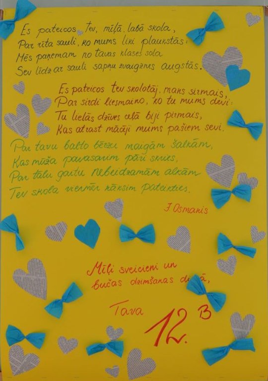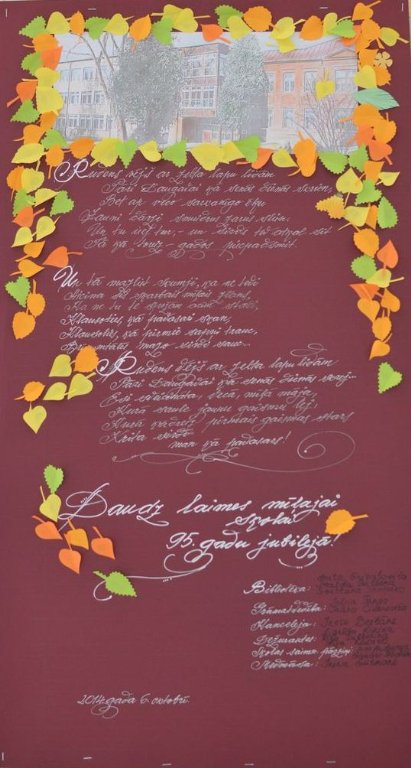 Katra skolas grupa (skolēnu klases un skolotāju metodiskās komisijas) apveica skolu dzimšanas dienā ar dāvanu.